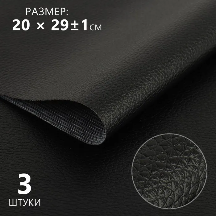 Искусственная кожа, 20×29±1 см, 0.5 мм, 3 шт., чёрная