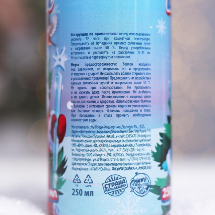 Искусственный снег спрей, «Весёлый праздник», белый, 250 мл — Характеристики