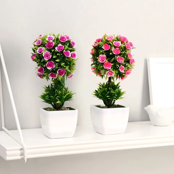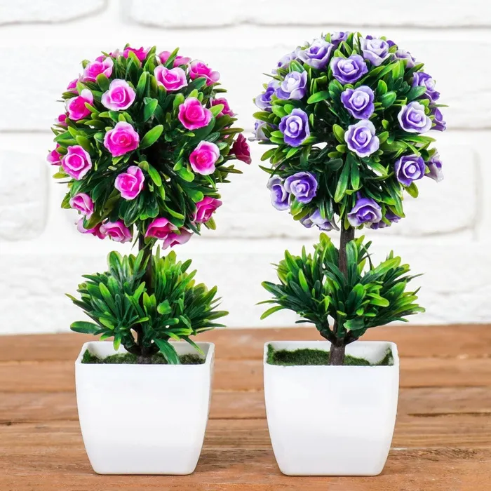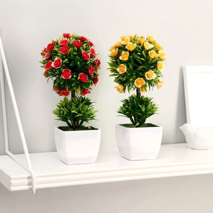 Искусственный цветок в горшке «Деревце с розочками в кустах», 7×21 см, МИКС — Характеристики