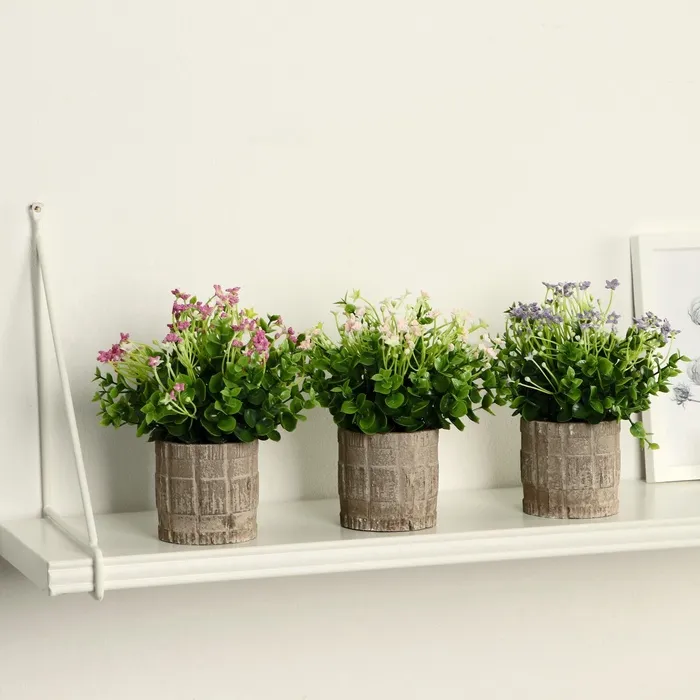 - Практичность и долговечность: искусственные материалы гарантируют, что цветок не потеряет свежий вид с течением времени. Больше не надо беспокоиться о поливе, солнечном освещении или засыхании растений.