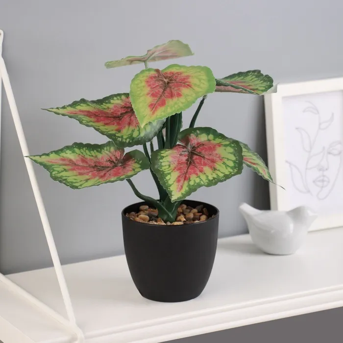 Изящная форма листьев делают этот искусственный каладиум настоящим украшением любого интерьера. Высотой 21 см, он привносит живую энергетику и насыщенный цветовой акцент, который сохраняет свежесть и выразительность круглый год без необходимости ухода.