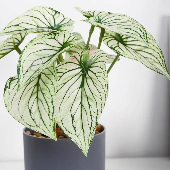 Добавьте зелёный акцент в интерьер без лишних хлопот. Компактное декоративное растение в горшке с выразительной листвой станет стильным украшением рабочего стола, подоконника или полки. Оно создаёт атмосферу живой природы, не требуя ухода и дополнительного освещения.