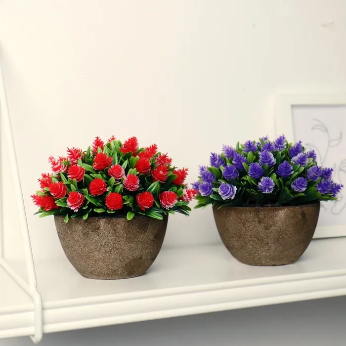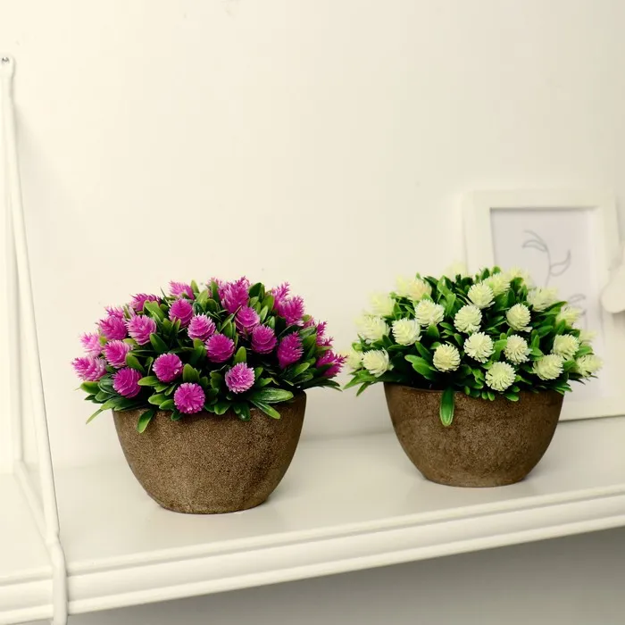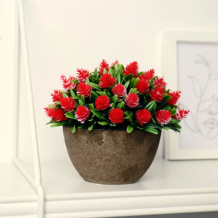Искусственный цветок в горшке «Многослойные бутоны», 13×11 см, МИКС — Характеристики