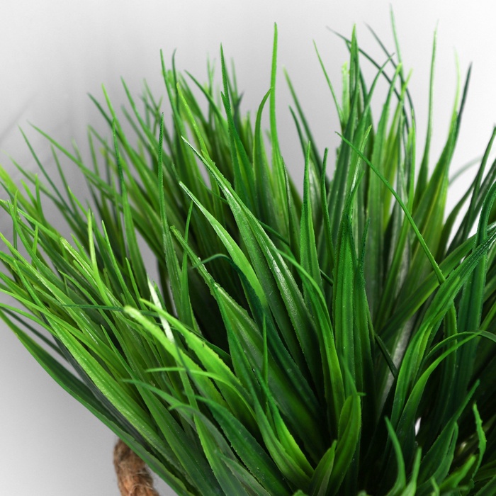 - Реалистичность и естественность: Тонкие, упругие стебли осоки точно повторяют форму живого растения. Природный оттенок зелени и аккуратный «земляной» ком в горшке создают полную иллюзию только что срезанной травы.
