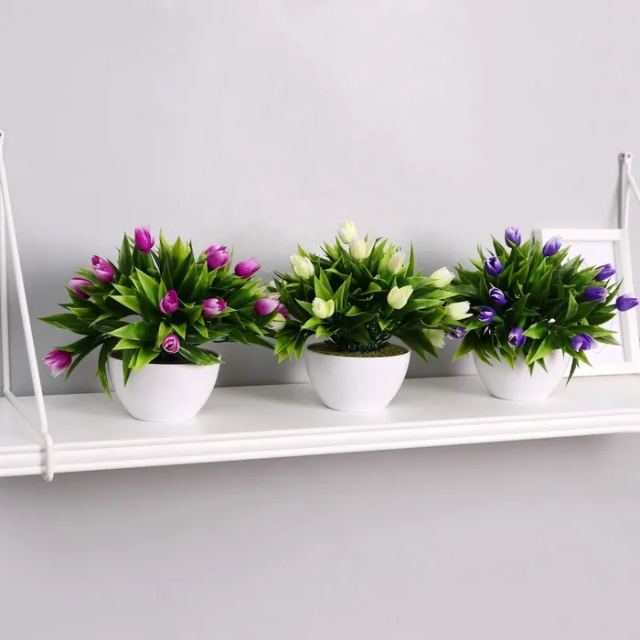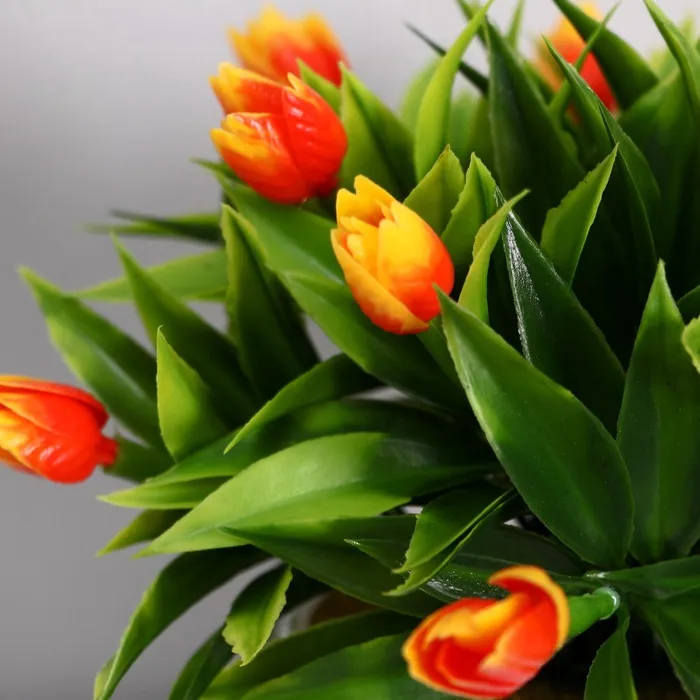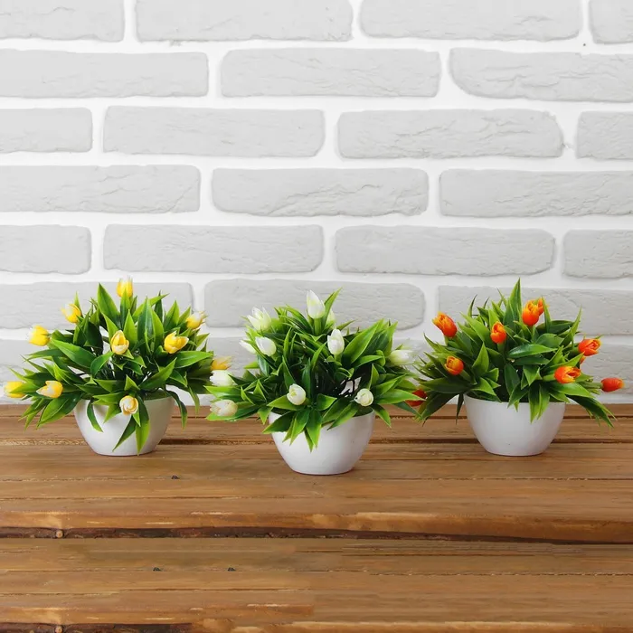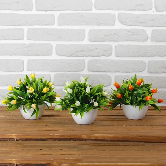Добавьте яркости в интерьере! Декоративное растение в горшке «Тюльпаны» – это стильный и удобный способ оживить ваш дом или офис. Высота всего 14 см делает его идеальным для любого пространства, будь то полка, стол или подоконник. Искусственные листья и цветки выглядят так натурально, что трудно отличить от настоящих тюльпанов.