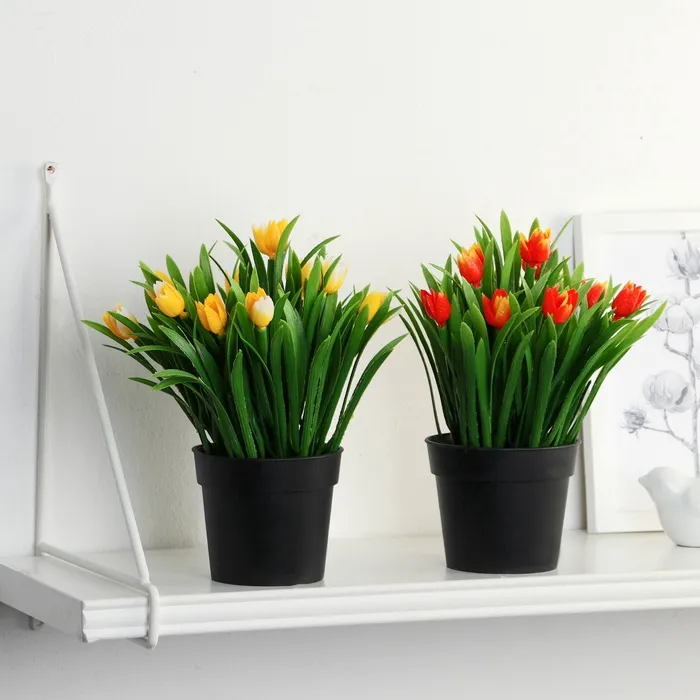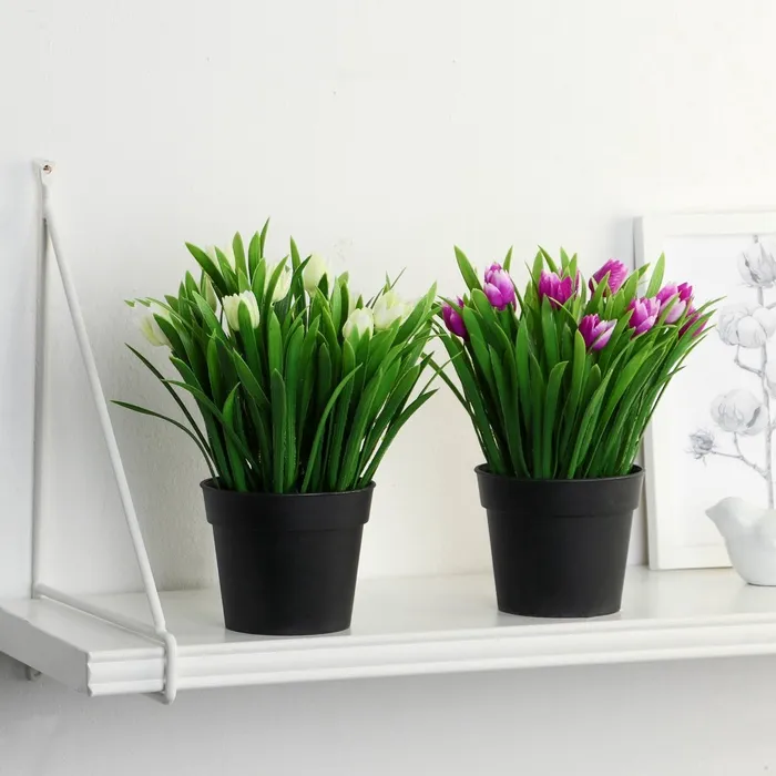 Освежите интерьер легкостью природы! Искусственный тюльпан в горшке – это идеальное решение для декора, созданное для тех, кто хочет внести зелень в свое пространство без заботы о живых растениях.