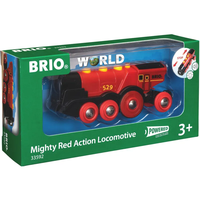 Большой батарейный локомотив Brio 33592 привносит новую динамику в игры на железной дороге! Локомотив оснащен фарами и кнопками для движения вперед, назад и звукового сигнала. Ведущие колеса можно освободить для свободного вращения при толкании вперед.
