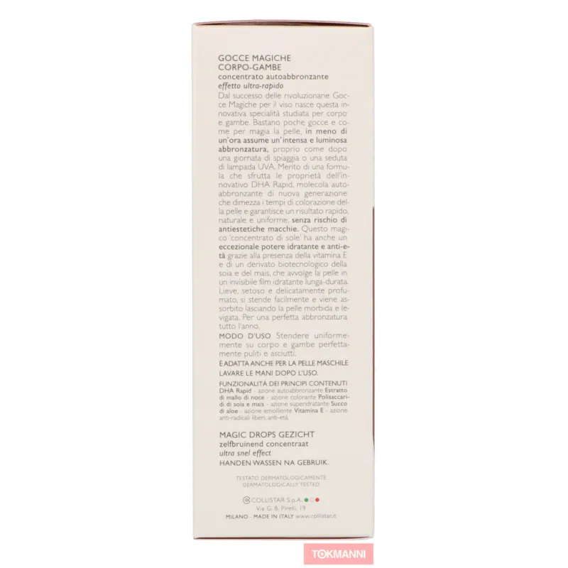 Автозагар Collistar 125 мл Body-Legs Magic Drops Ultra-Rapid Effect обеспечивает быстрое и равномерное нанесение, даря вашей коже естественный загар без необходимости в солнце. Легко наносится и быстро впитывается, не оставляя следов на одежде.
