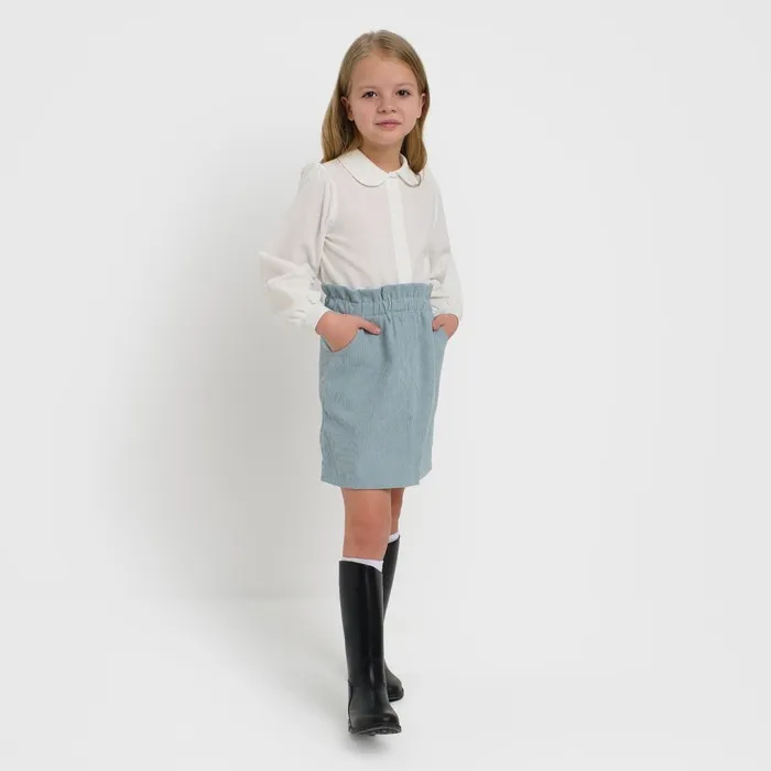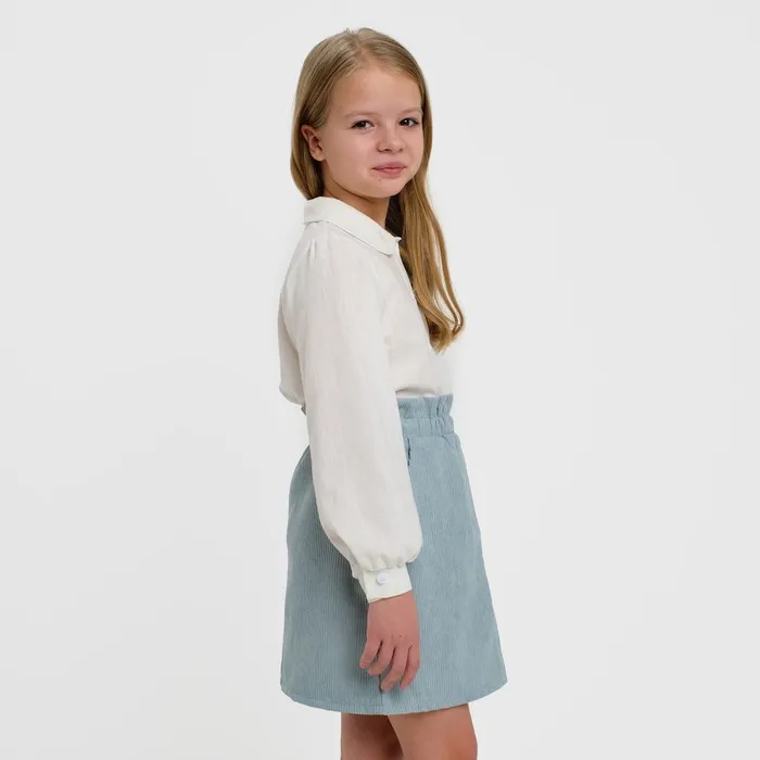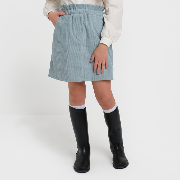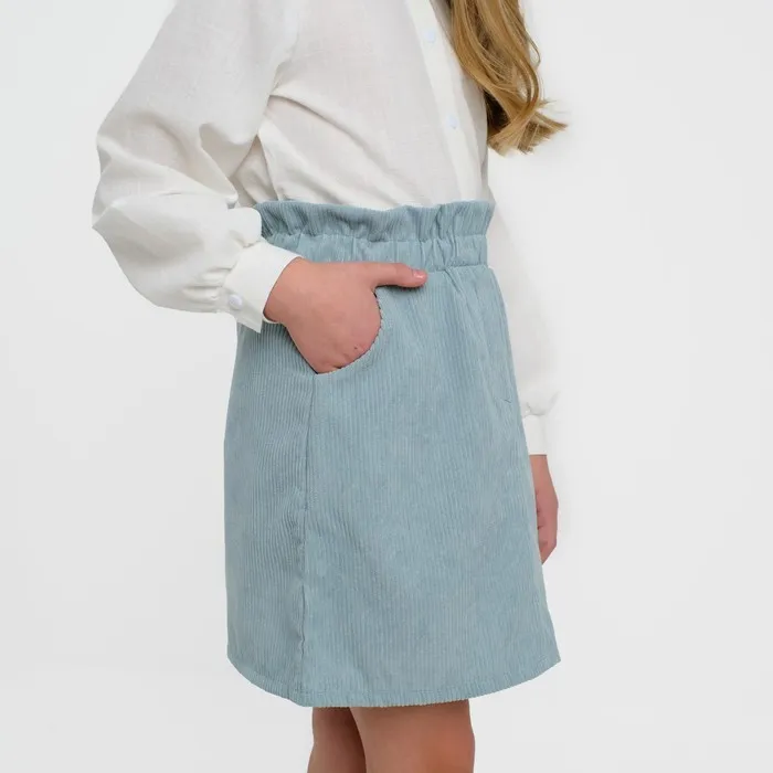 Детская юбка для принцессы завораживает своим серо-голубым вельветом и сочетается с любыми блузками, футболками и свитерами.