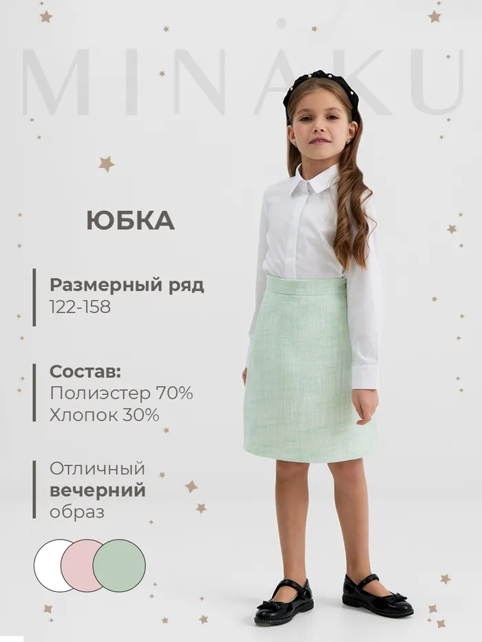 Юбка для девочки, MINAKU :Party Dress, цвет зеленый, рост 140 см — Характеристики