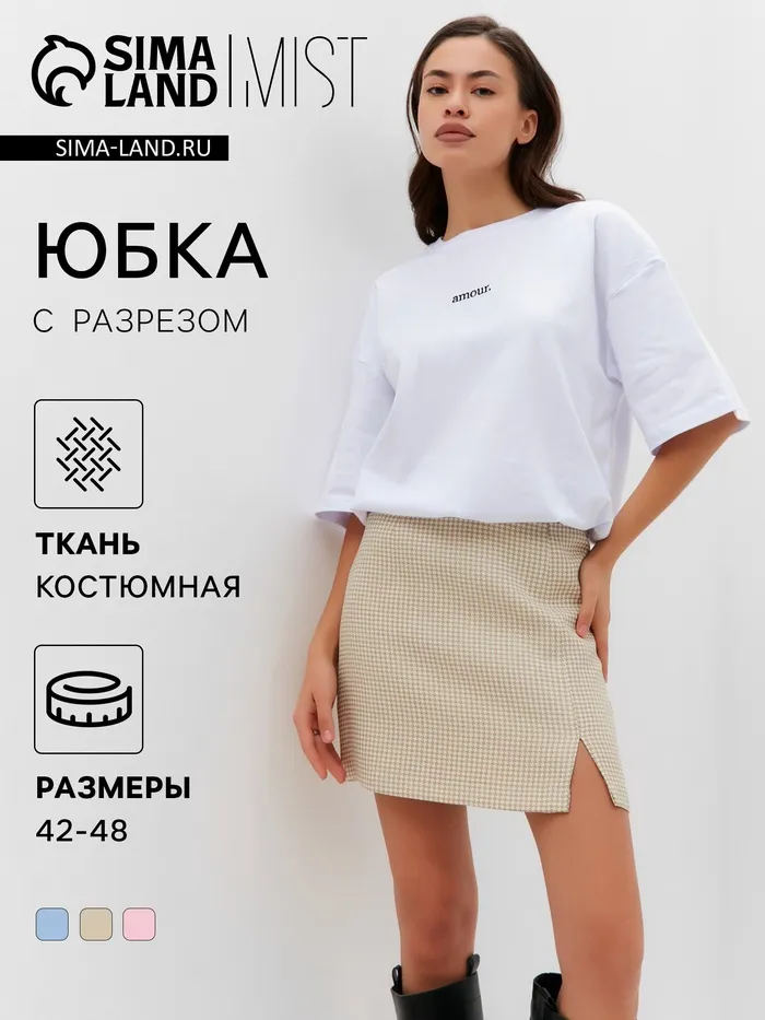Юбка женская с разрезом MIST р. 46, бежевый/белый — Характеристики