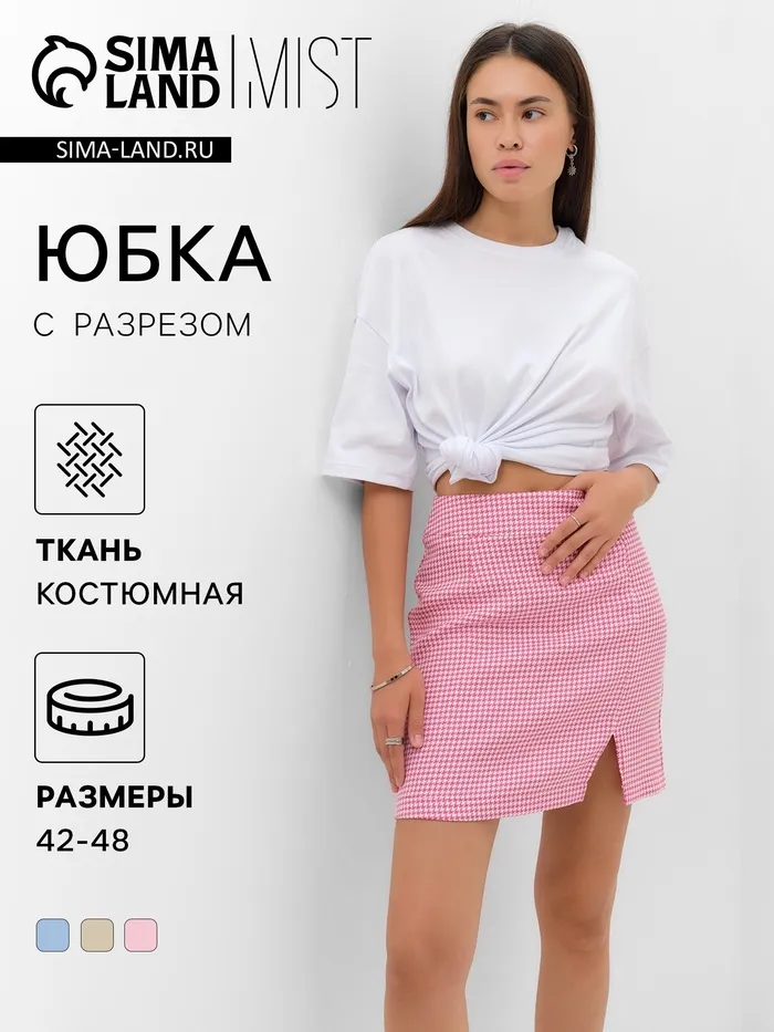 Юбка женская с разрезом MIST р. 48, розовый/белый — Характеристики