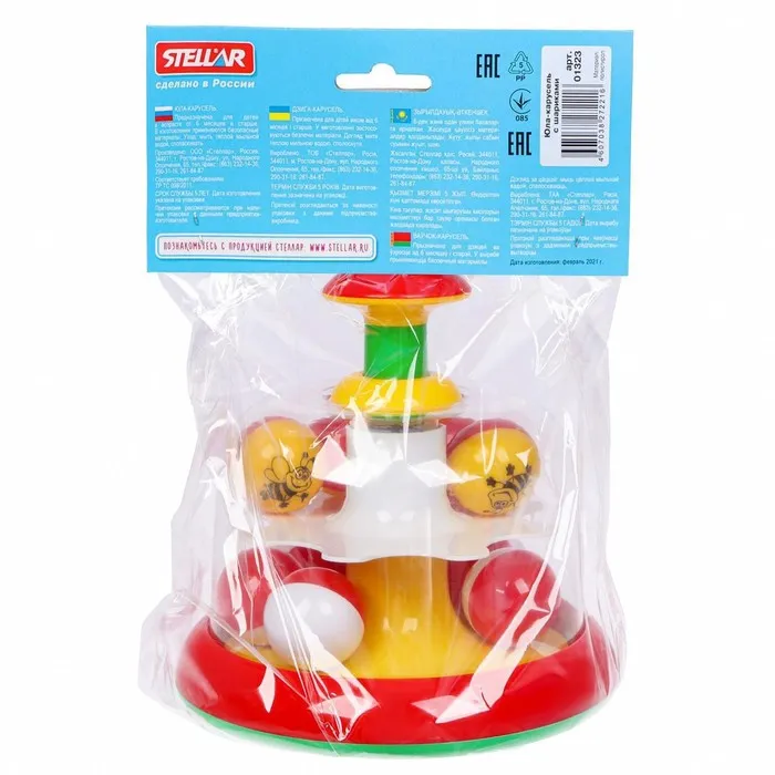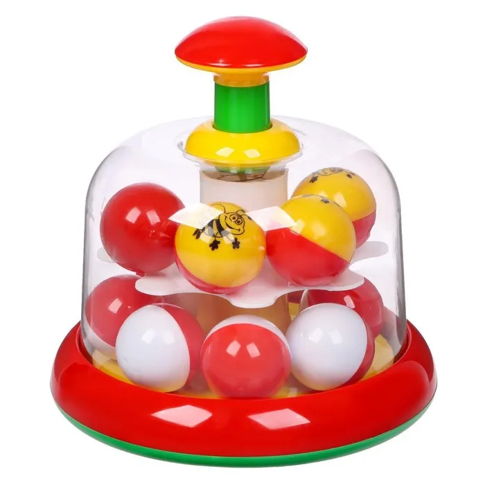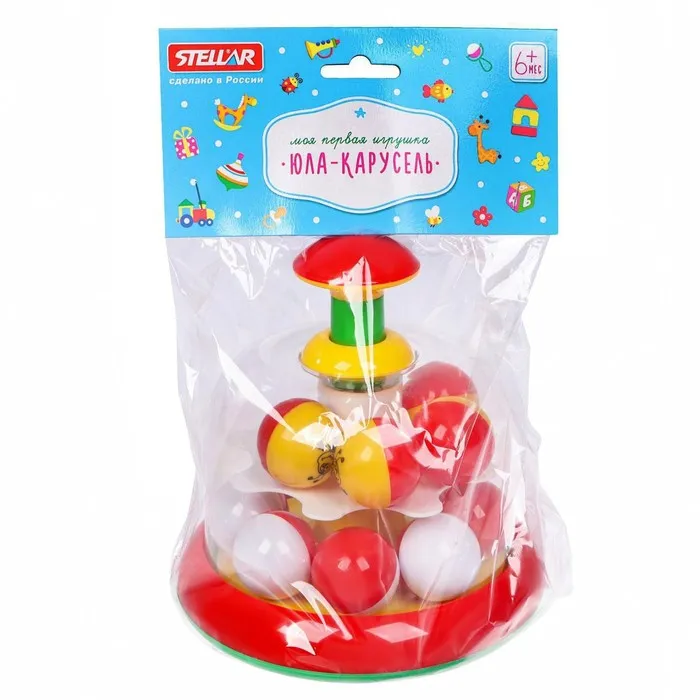 Юла-карусель с шариками — это замечательная игрушка, с ней малыш весело и с пользой проведёт время. Юла легко заводится нажатием на рукоятку, что под силу даже малышам. При касании рукояти срабатывает карусель с яркими шариками. Детям особенно интересно не только нажимать на рукоятку, но и наклонять юлу, чтобы шарики начали кататься. Юла прочно стоит на поверхности.