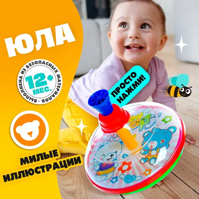Юла — любимая многими поколениями игрушка, которая остаётся популярной и по сей день. Она позволяет совмещать познание мира с игрой на разных этапах развития крохи: от полугода до достижения дошкольного возраста. С её помощью развиваются мелкая моторика и тактильные ощущения, визуальное восприятие, совершенствуются координация и ловкость движений.