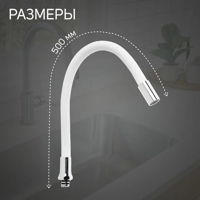Излив для смесителя ZEIN, 3/4", гибкий, силикон, нержавеющая сталь, 50 см, сетка пластик, белый — Характеристики