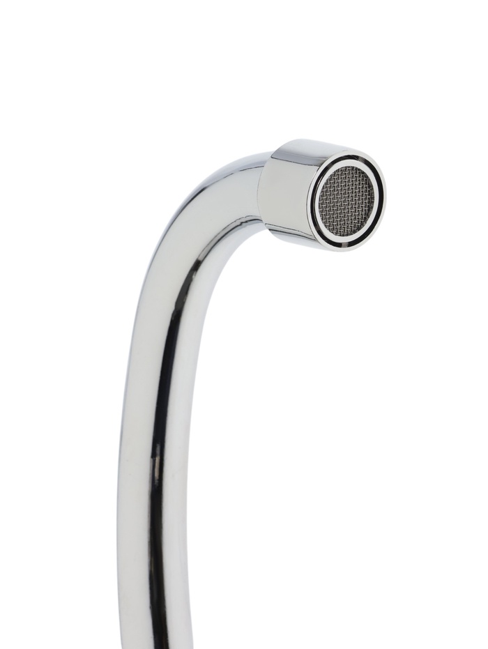 Аэратор экономит воду и предотвращает разбрызгивание, а металлическая сетка обеспечивает надежную фильтрацию и предотвращает засорение.