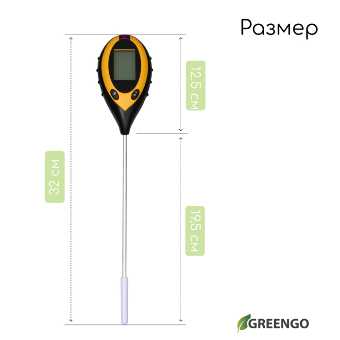 Измеритель почвы 4 в 1: для влажности, кислотности, освещённости и температуры, Greengo — Характеристики