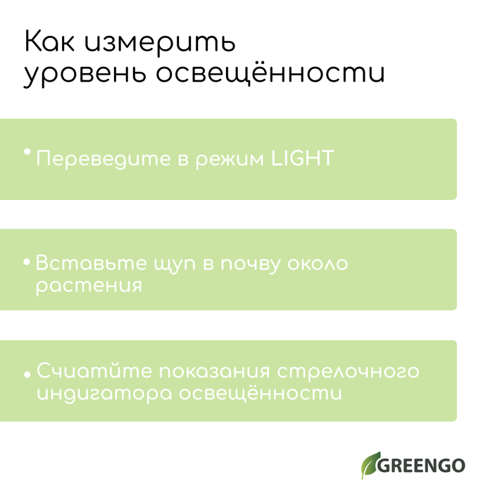 Измеритель почвы 4 в 1: для влажности, кислотности, освещённости и температуры, Greengo