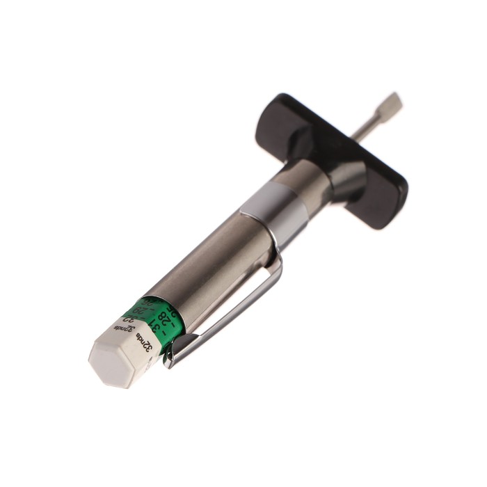 Измеритель толщины остатка протектора механический - это простой и надежный инструмент для определения износа шин. Он состоит из металлического корпуса с измерительной шкалой и подвижного указателя, который опускается в протектор при нажатии на кнопку. С помощью этого устройства можно быстро и точно определить остаточную глубину протектора в миллиметрах, что позволяет своевременно заменить или отремонтировать шины.