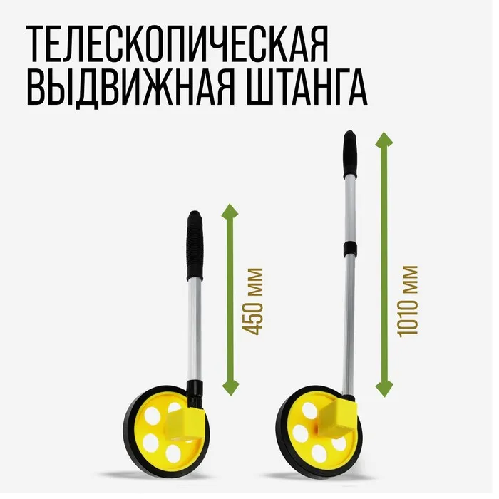 Точность на каждом метре! Механическое измерительное колесо — простой инструмент для быстрого замера расстояний на местности. Диаметр колеса 142 мм и диапазон до 999.9 метров подходят для строительства, ландшафтных и геодезических работ.