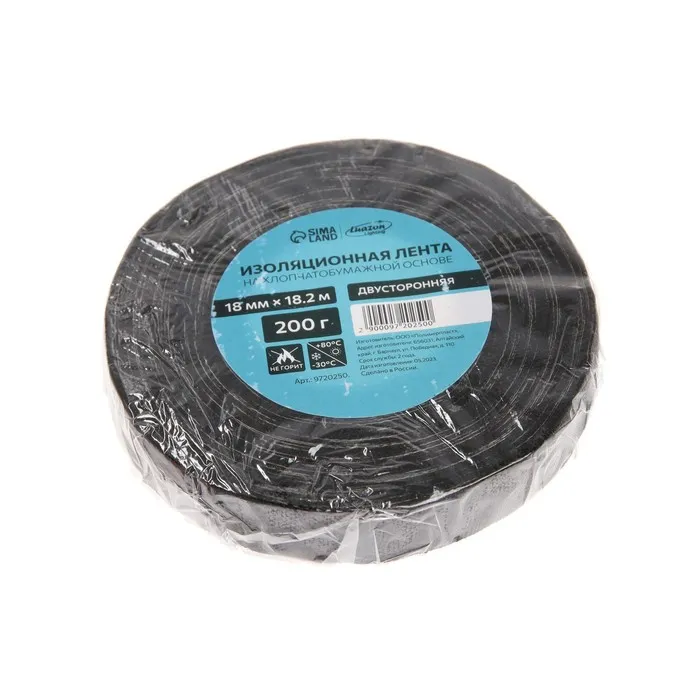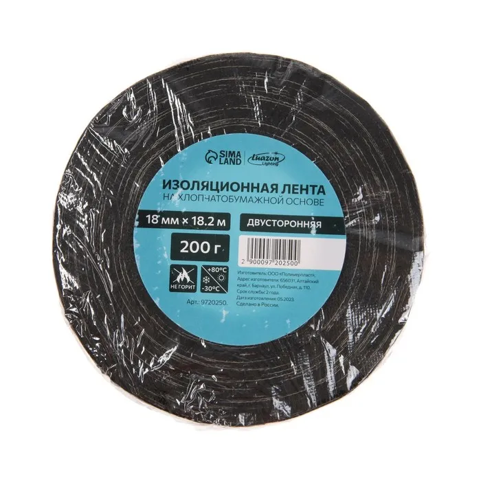 Изолента Luazon Lighting, ХБ, 200 гр, 18 мм х 18.2 м, двусторонняя, обычной липкости — Характеристики