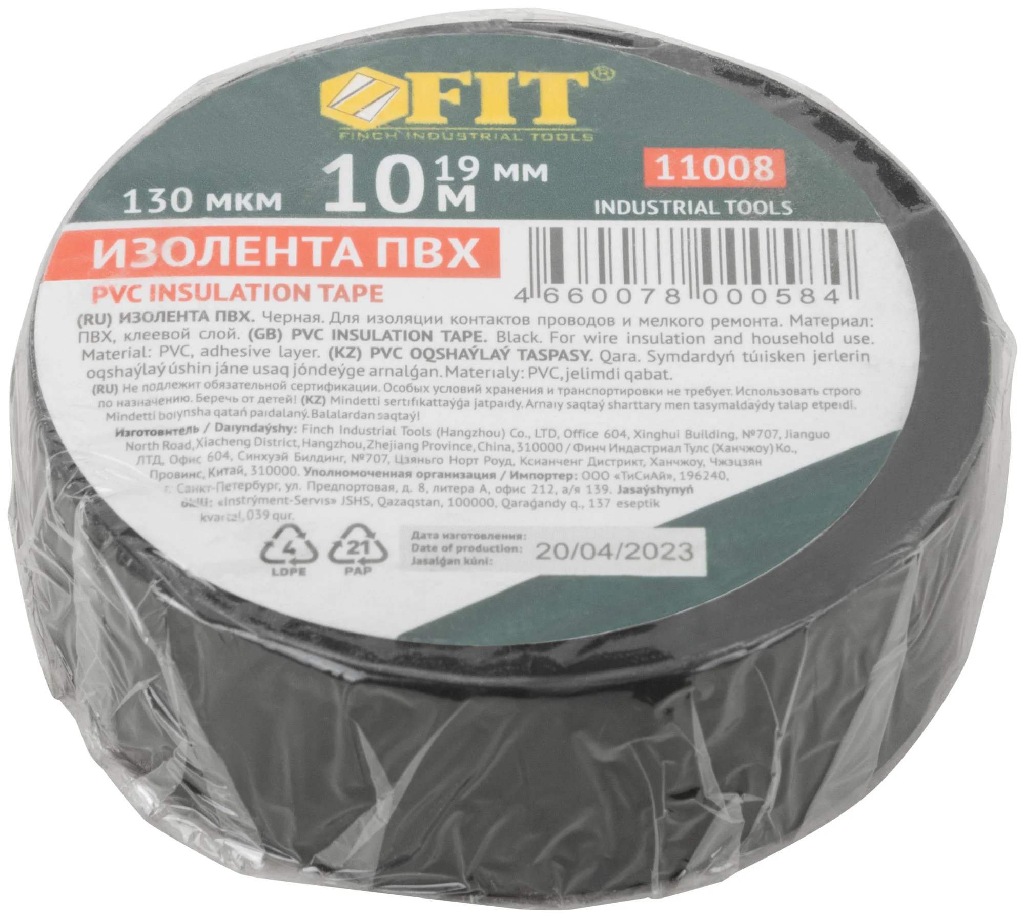 ПВХ изолента 19 мм х 0,13 мм х 10 м черная FIT для изоляции