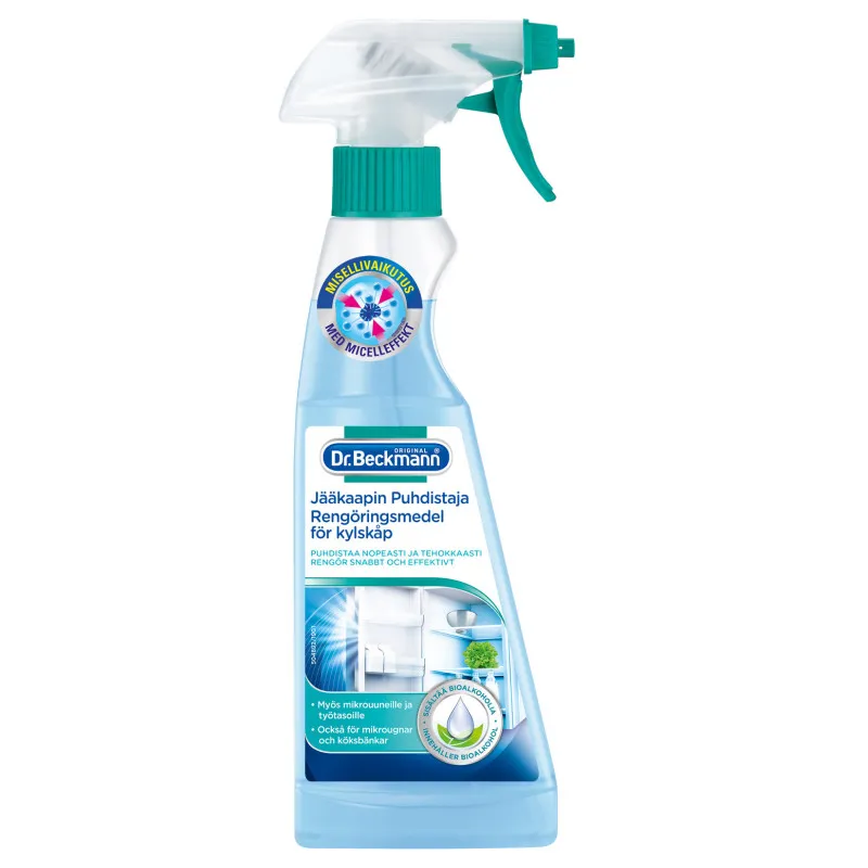 Жидкость Dr Beckmann для очистки холодильника разработана для быстрой и легкой очистки. Она также размораживает легкий слой льда и подходит для использования в камерах охлаждения, морозильных отделениях и микроволновых печах. Средство гигиенично для пищевых продуктов, и поверхности не требуют промывания после очистки. Достаточно просто распылить и протереть. Объем упаковки 250 мл.