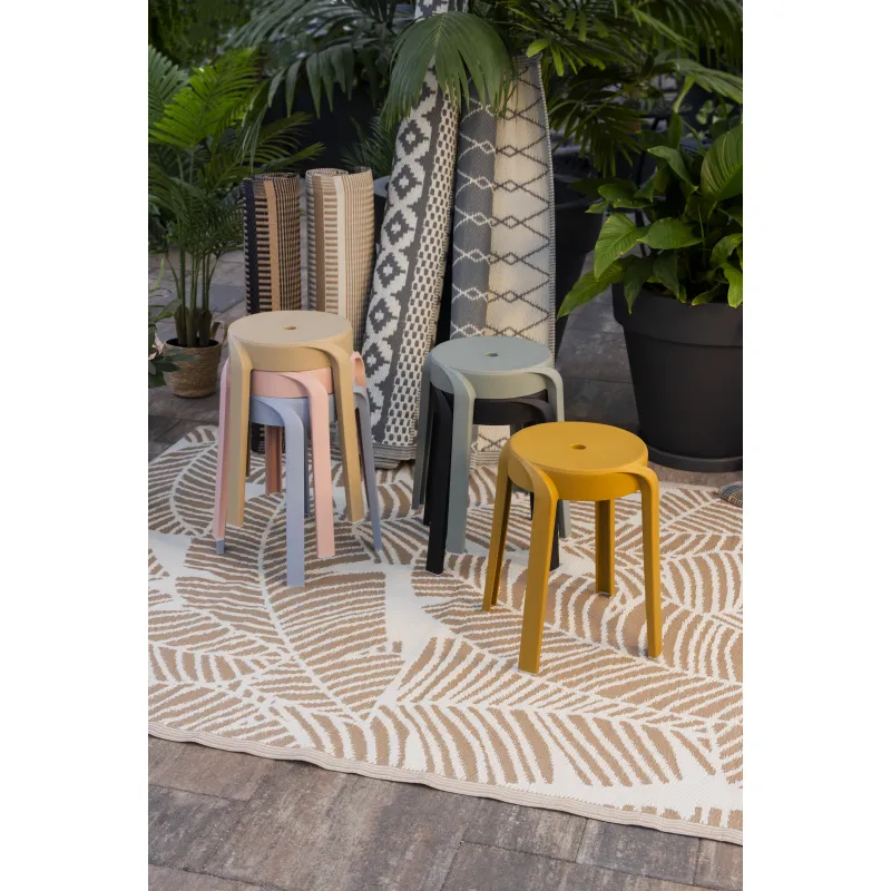 Эта табуретка идеально впишется в любой современный интерьер, добавив свежести и яркости. Она устойчива к погодным условиям, что делает её идеальной для использования как внутри, так и снаружи дома.