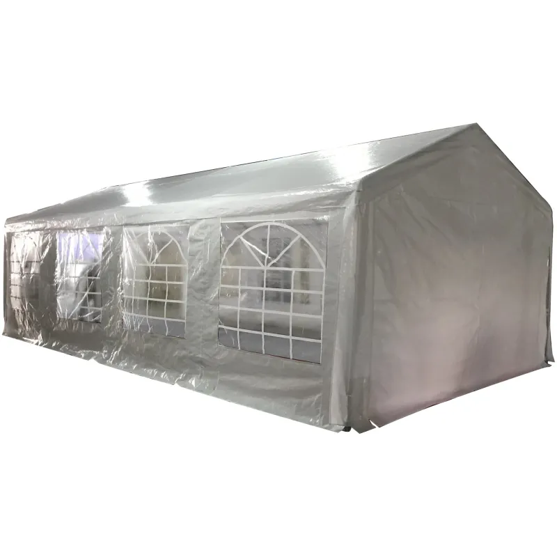 В этой палатке поместится всё необходимое для больших праздников. Пространства достаточно и по высоте, что создает воздушную и просторную атмосферу. На обоих концах есть двери на молнии, которые можно свернуть вверх для удобства. PVC-окна по бокам обеспечивают хорошую освещенность внутри.