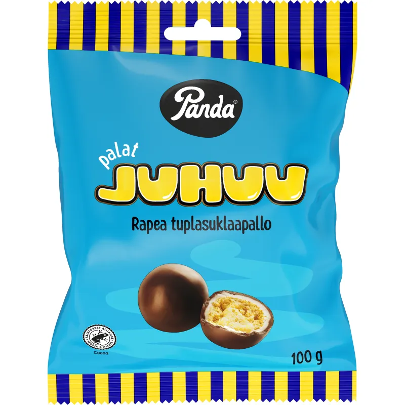 Двойной шоколадный шарик состоит из слоев молочного и белого шоколада от Panda, а внутри скрывается хрустящее сердечко. Ура, секрет раскрыт!