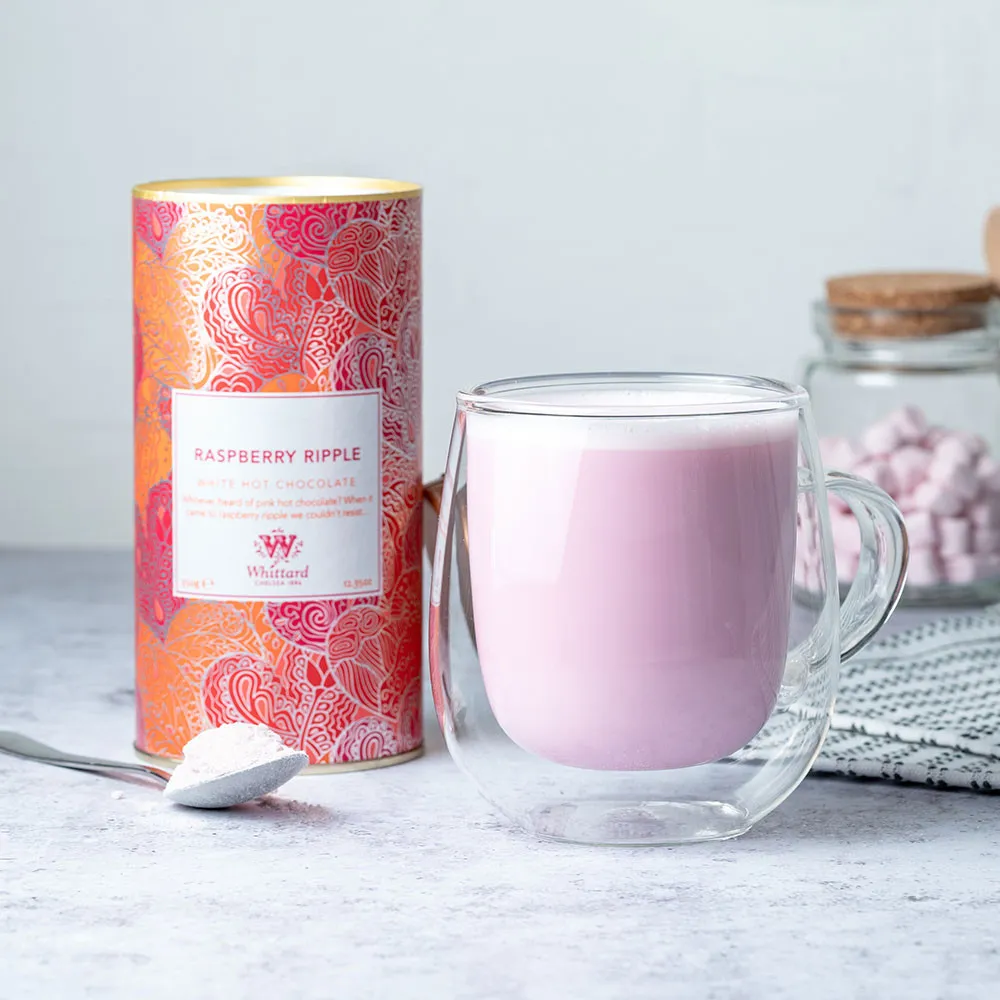 Кремово-сладкий, мягкий и... розовый! "Raspberry Ripple" – это сочетание классического "Luxury White" какао от Whittard of Chelsea и вкусов малины.