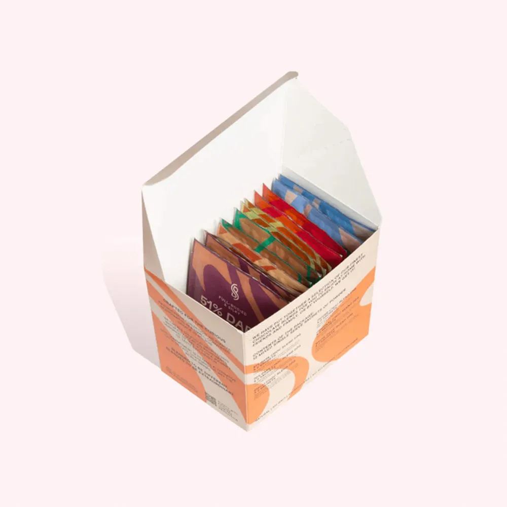 Набор «Cocoa Collection» содержит в общей сложности 12 одноразовых пакетиков и включает шесть великолепных вкусов какао (по два каждого).