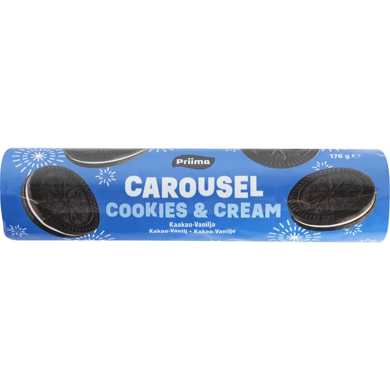 Priima Carousel Cookies & Creme - это печенье, которое перенесет вас в мир сладких удовольствий! Хрустящее круглое какао-печенье с нежной ванильной начинкой подарит незабываемые моменты радости. Идеальный выбор для тех, кто любит сладкое и ценит качество! Упаковка весом 176 г обеспечит вам длительное наслаждение.