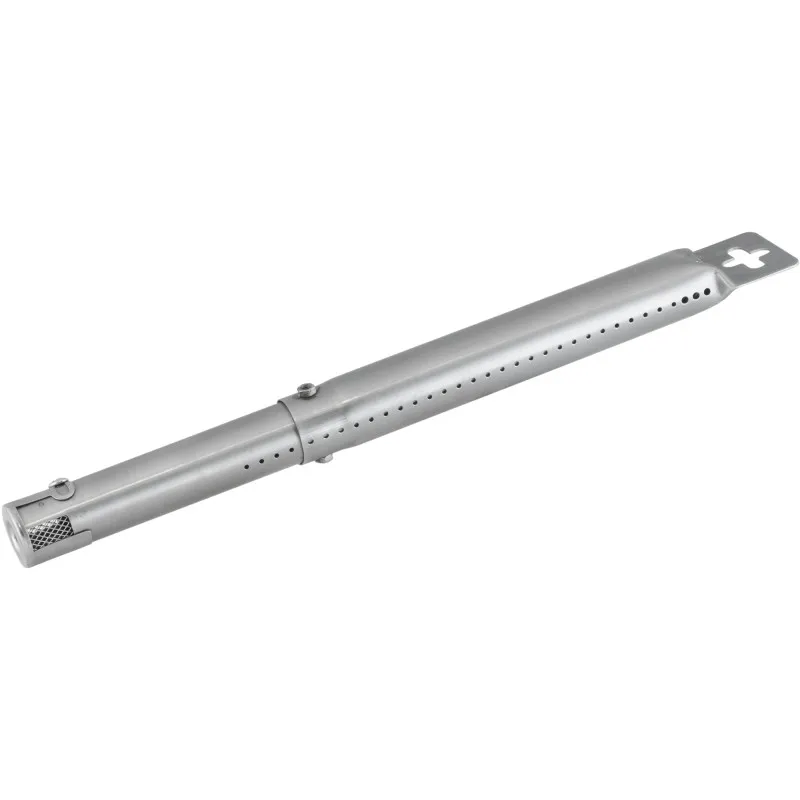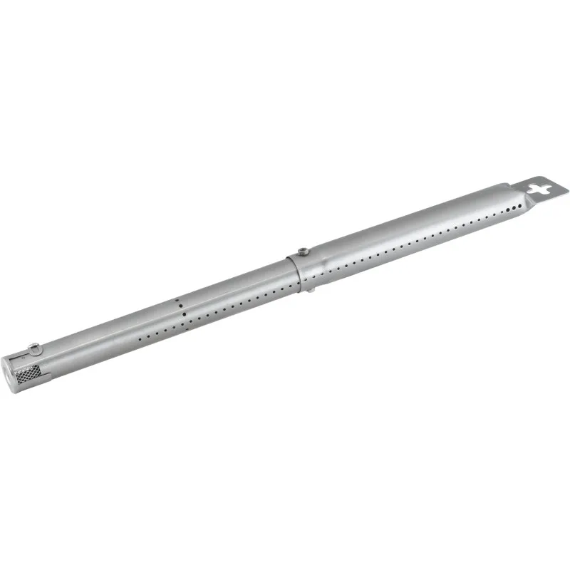 Эта трубчатая горелка с универсальными креплениями подходит в качестве запасной части для большинства грилей, использующих аналогичные модели горелок, а также для грилей, в которых изначально использовались чугунные горелки. Изготовлена из нержавеющей стали, длина регулируется от 29,5 до 44,5 см. Также возможно регулирование подачи воздуха в зависимости от модели гриля. В комплект входят универсальные крепления для горелки.