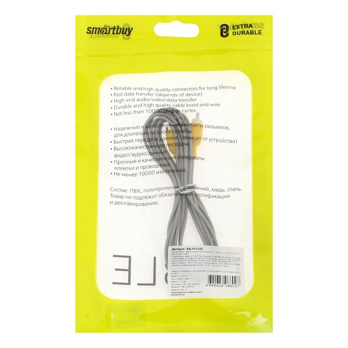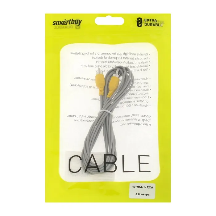 Кабель аудио/видео Smartbuy, 1xRCA(m)-1xRCA(m), 3 м, серый — Характеристики