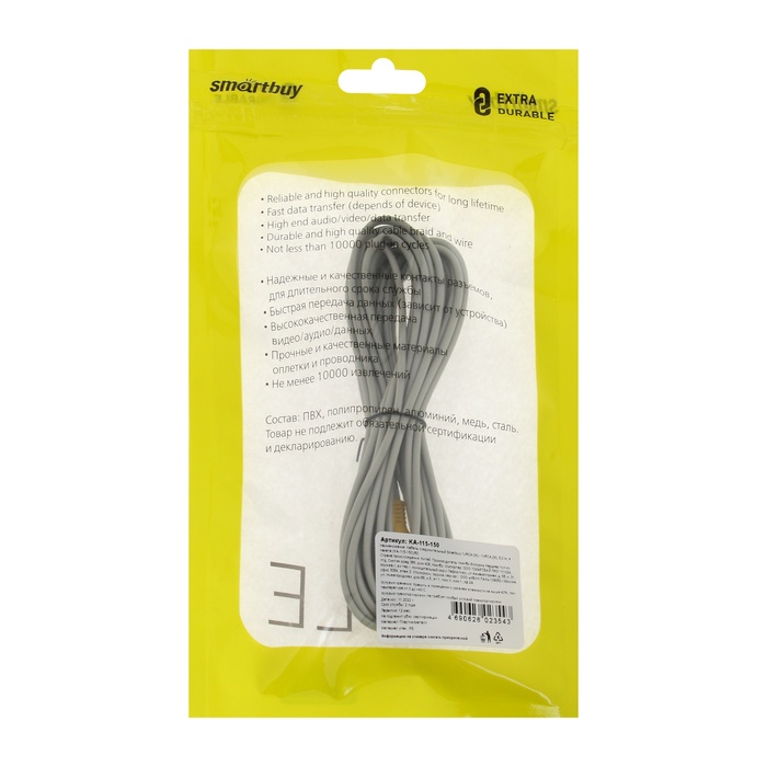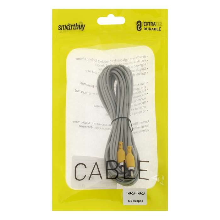 Кабель аудио/видео Smartbuy 1xRCA(m)-1xRCA(m) длиной 5 метров — это решение для подключения ваших устройств на большем расстоянии. Он идеально подходит для использования в домашних кинотеатрах, студиях или других местах, где требуется соединить телевизор, ресивер, проигрыватель или звуковую систему через RCA порты. Благодаря длине 5 метров вы получаете большую свободу при расположении устройств, а стабильная передача сигнала гарантирует качество изображения и звука. Этот кабель обеспечивает надежность и простоту в подключении, идеально подходя для использования в старой или новой аудио-видеотехнике.