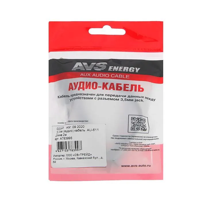 Кабель AUX AVS AU-611, 2 м — Характеристики