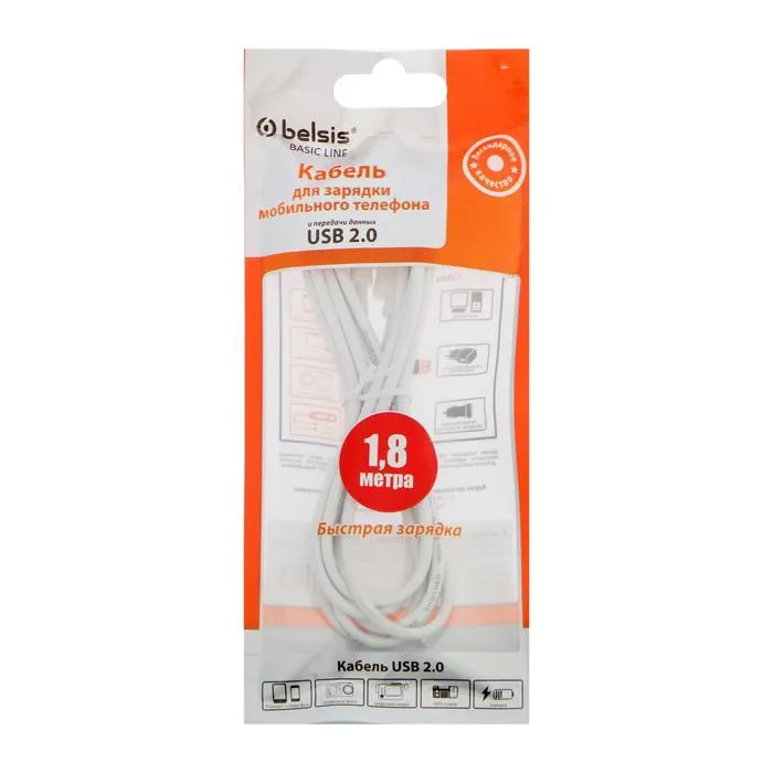 Кабель Belsis предназначен для передачи данных и пополнения заряда аккумулятора портативных аксессуаров. Заряжайте устройства быстро благодаря поддержке быстрой зарядки. Берите кабель с собой в автомобиль, офис или на прогулку, изделие не займёт много места. Высококачественные материалы гарантируют долговечную работу и стабильное соединение. Кабель подойдёт для цифровых камер, смартфонов, планшетов и других устройств с соответствующим разъёмом.