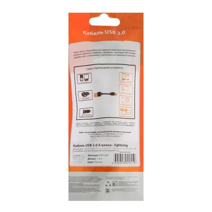 Кабель Belsis BW1438, Lightning - USB, 2 А, 1.8 м, белый — Характеристики