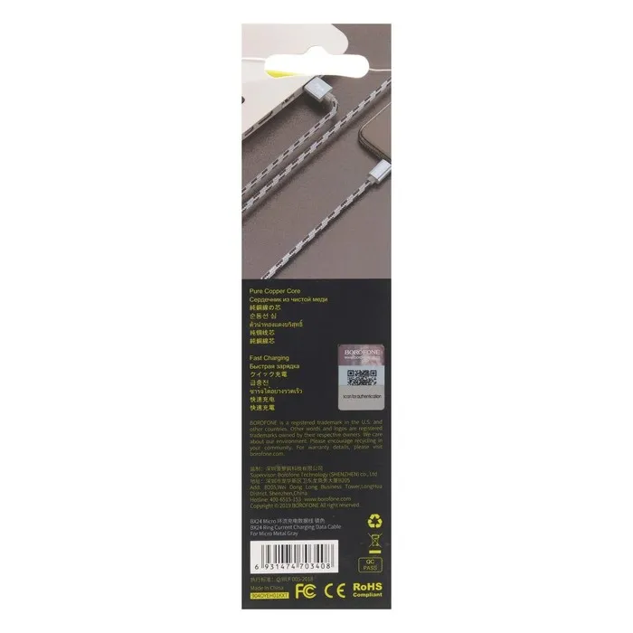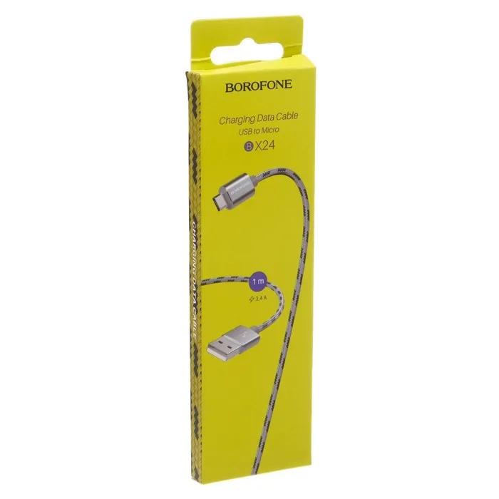 Кабель Borofone BX24, micro USB - USB, 2.4 А, 1 м, нейлоновая оплётка, серый — Характеристики