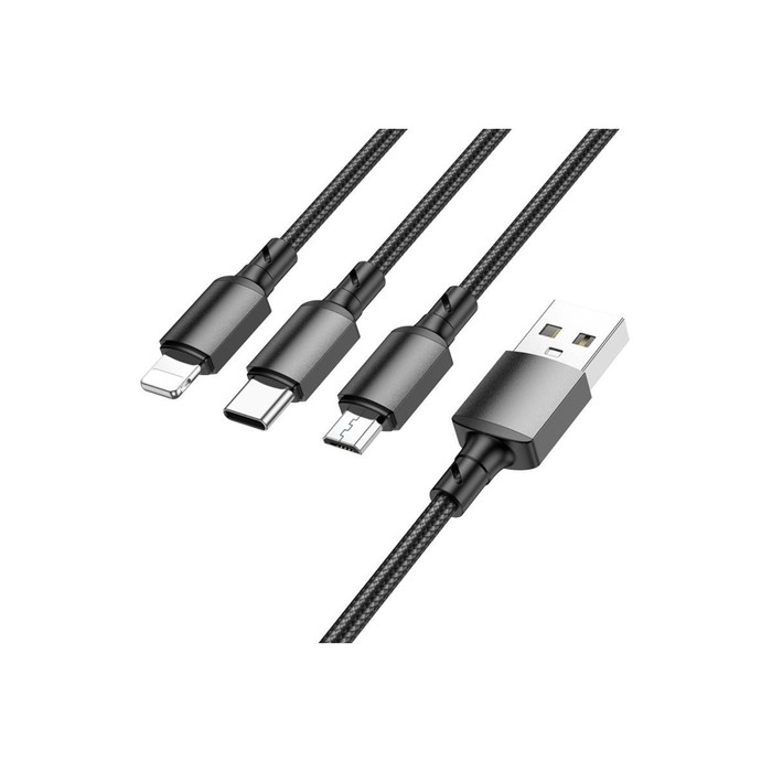 Кабель Borofone BX72, 3 в 1,microUSB/Lightning/Type-C-USB,2 А,тканевая оплётка, 1 м, чёрный — Характеристики