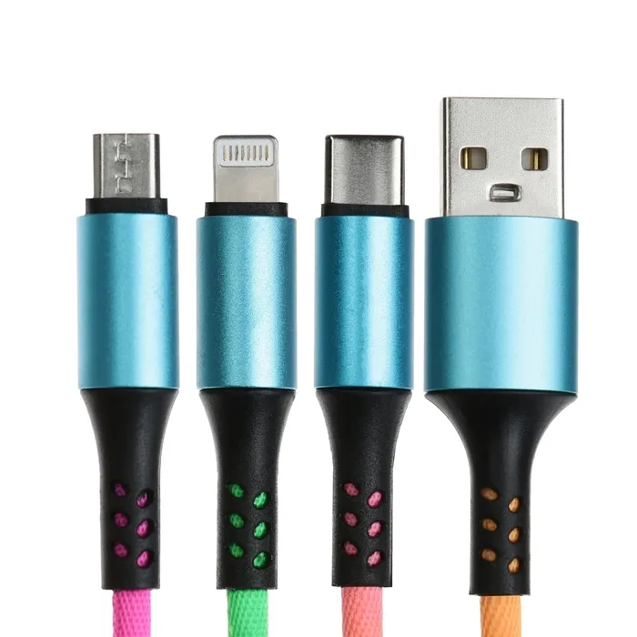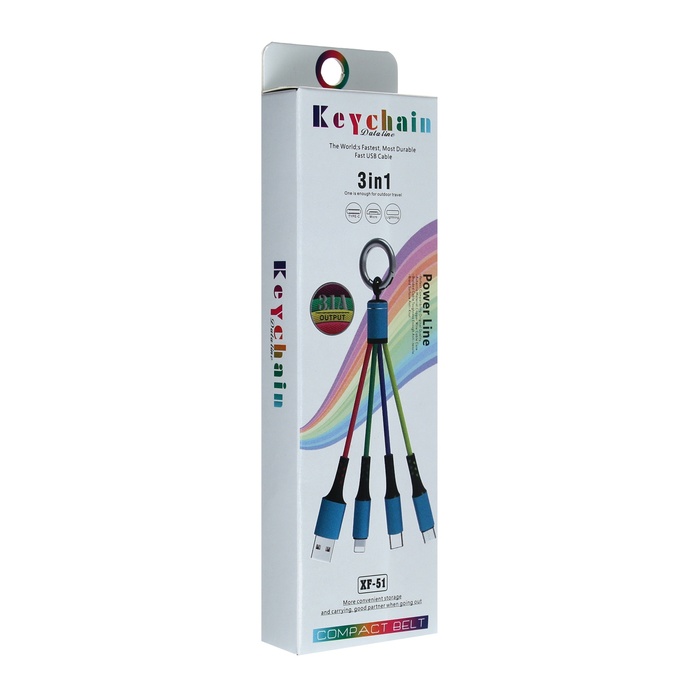 Кабель брелок 3 в 1, MicroUSB/Type-C/Lightning - USB, 2.4 А, разноцветный — Характеристики