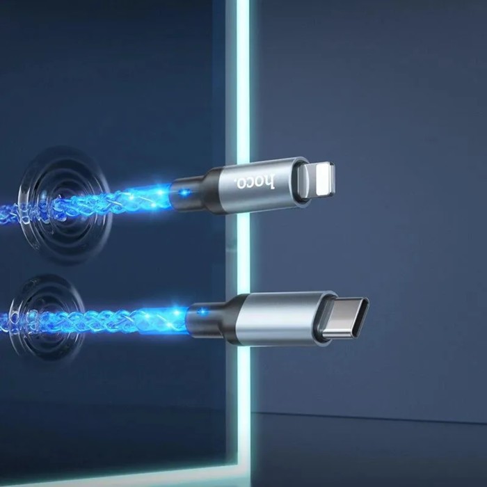 Кабель Hoco U112, Type-C - Lightning, 3 А, 1 м, прозрачный, PD, передача данных, ПВХ, серый — Характеристики