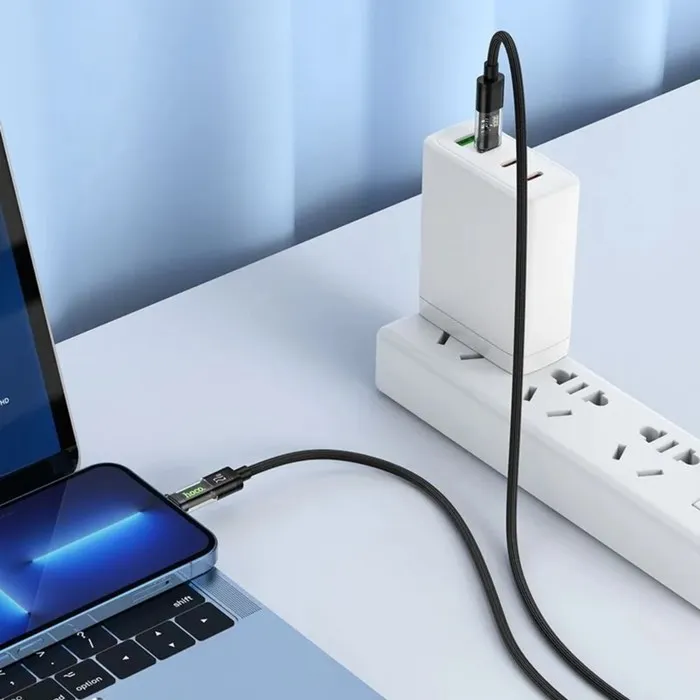 Кабель Hoco U116, Type-C - Lightning, 1.2 м,прозрачный,быстрая зарядка,оплётка нейлон,чёрный — Характеристики