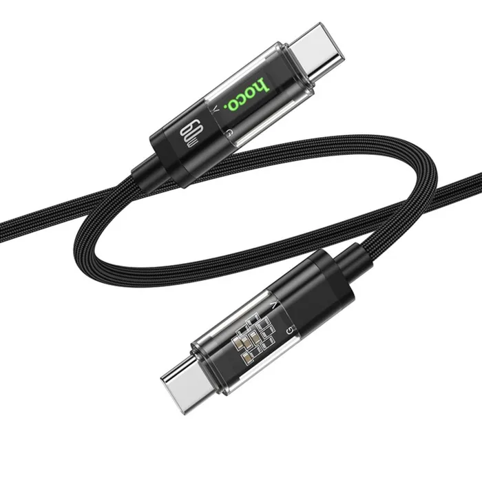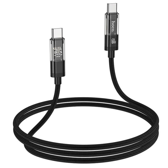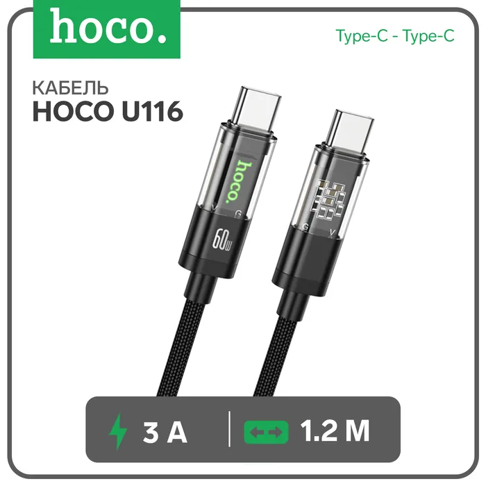 Кабель Hoco U116, Type-C - Type-C, 60 Вт, 3 А,1.2 м,прозрачный,быстрая зарядка,нейлон,чёрный — Характеристики