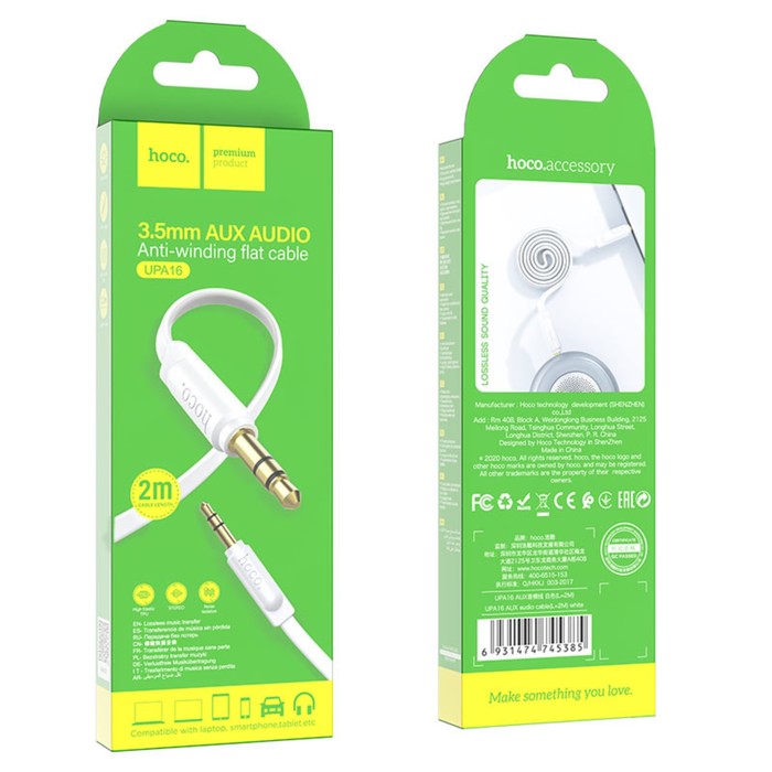 Кабель Hoco UPA16, Jack 3.5 мм (m) - Jack 3.5 мм (m), 2 м, TPE, белый — Характеристики