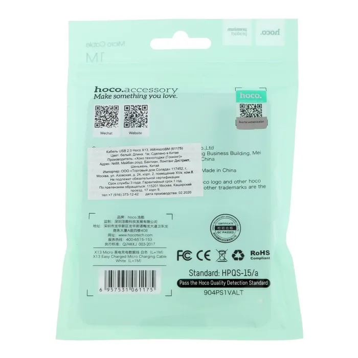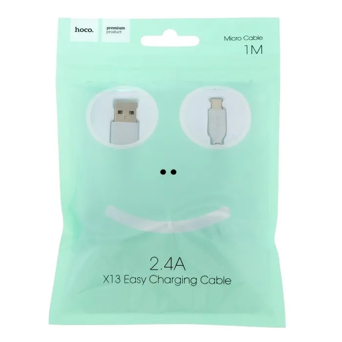 Кабель Hoco X13, microUSB - USB, 2,4 А, 1 м, PVC оплетка, белый — Характеристики