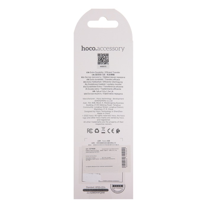 Кабель Hoco X14 Times Speed, Type-С - USB, 3 А, 2 м, черно-красный — Характеристики
