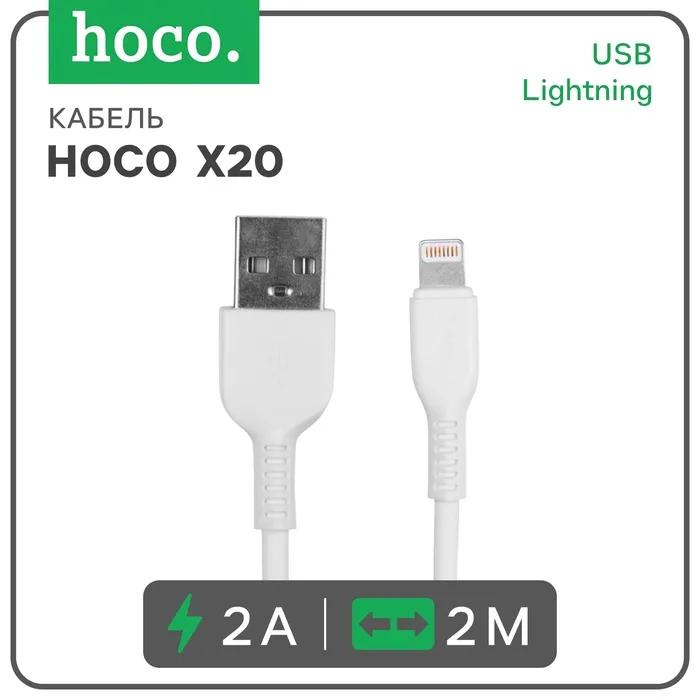 Кабель Hoco X20, Lightning - USB, 2 А, 2 м, PVC оплетка, белый — Характеристики