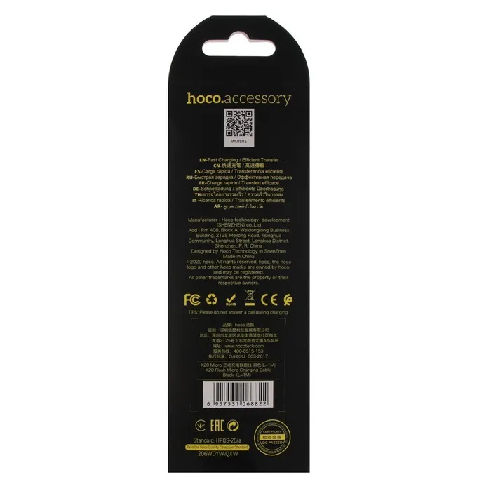 Кабель Hoco X20 — это надежный аксессуар для зарядки и передачи данных для устройств с разъемом microUSB. С поддержкой тока 2.4 А, он обеспечивает быструю зарядку, что позволяет вам быстро восстановить заряд вашего устройства. Этот кабель подходит для использования с широким спектром гаджетов, таких как смартфоны, планшеты и другие устройства с разъемом microUSB.